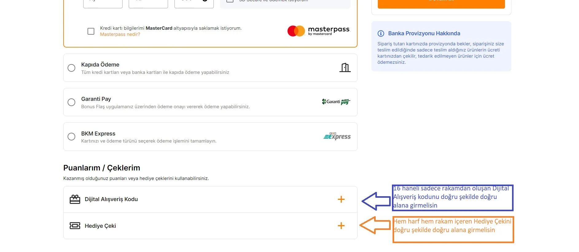 - 3. adım: Ödeme yöntemi belirlendikten sonra, Dijital Alışveriş Kodu alanına ilgili kod yazılır.