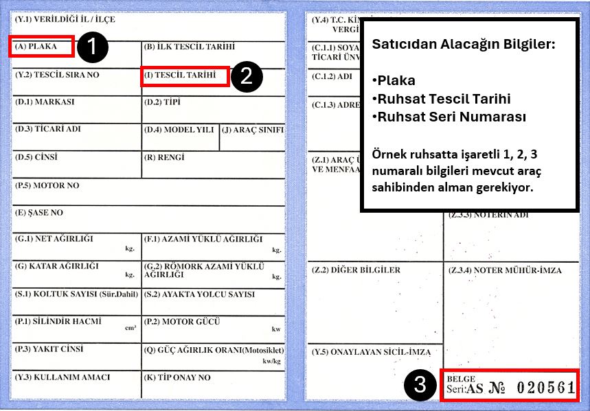 Satıcıdan (Aracın Mevcut Sahibinden) Alacağın Bilgiler: